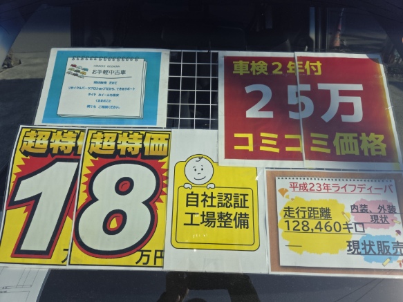 お手軽中古車(GOZAINN)ホンダ ライフディーバ H23年式 走行128,460㌔ 【車検2年付 250,000円税込】内外装現状 現状販売 [No.120] NEWおすすめ